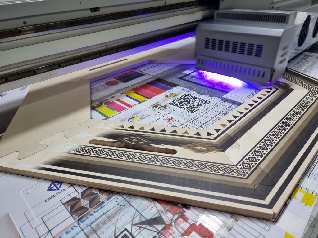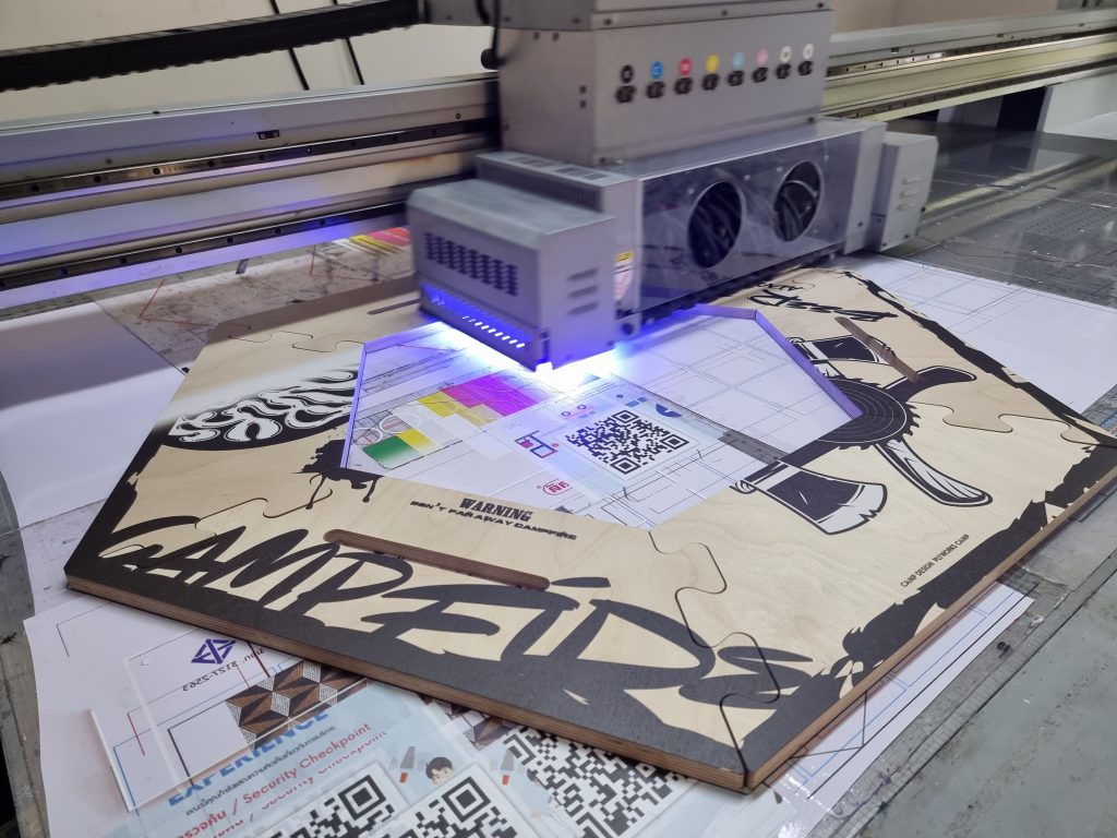 พิมพ์ UV ภาพกราฟฟิก แผ่นไม้หกเหลี่ยม ทำโต๊ะ ใช้สีสี cmyk พิมพ์โดยตรง ทำให้เห็นผิวขรุขระ ลายไม้ ตามเนื้อได้ พิมพ์สีระบบ UV ไม่จำกัดสี รับพิมพ์งานไม้อัด ,ไม้อัดเคลือบฟิล์ม (Film Face Plywood ) , ปาร์ติเคิลบอร์ด ( Particle Board ) , แผ่นเอ็มดีเอฟ ( MDF Board ) และผลิตภัณณ์ไม้อัดอื่นๆ พิมพ์ลายลงได้โดยตรง พิมพ์ระบบดิจิตอล cmyk lc lm + w + v ได้ทุกสี ตามไฟล์งานของลูกค้า เช่น jpg, png, photoshop, ai, pdf สามารถพิมพ์นูน เคลือบเงาได้ ช่วยเพิ่มมูลค่าสินค้าของคุณ หมึกพิมพ์มีความยืดหยุ่นสูง ไม่แตกสามารถบิดงอ พับได้ สกรีนสีสันคมชัด สกรีนได้ทั้งพื้นผิวยาง, พลาสติก PET, ABS, โพลีคาร์บอนเนต, TPU, ไม้, หนัง, อลูมิเนียม และวัสดุที่มีความอ่อนตัวอื่นๆ รองรับการพิมพ์จำนวนมาก